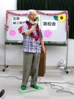 | 令和6年 3月14日 | 第8回市星連カラオケ交流会は、9:30から、ゆうゆうセンター交流ホールで開催されました。参加無料、出場費2,000円、参加申込締切は2月会長会でした。 歌松会からは、下の写真4名が出場され、熱唱されたのことでした。 上中さん@、森氏I、青田氏B、高木氏C(写真は西尾様Iのご提供) |