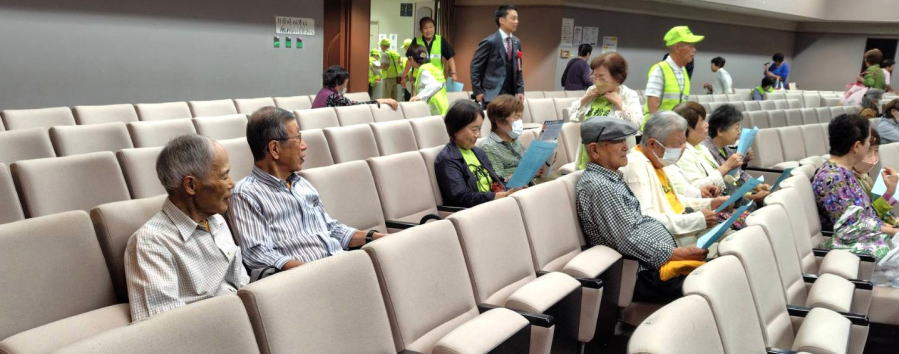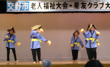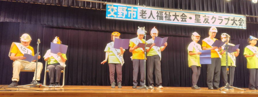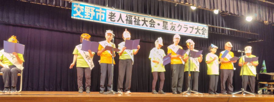 | 令和7年10月 4日 | 令和7年度交野市老人福祉大会兼交野市星友クラブ大会は、13:00から ゆうゆうセンター交流ホールにおいて開催されました。 式典後の第二部 演芸発表では、シニア松塚からは、カラオケ歌松会の12名が出演され、9月までのNHK朝ドラ”あんぱんまん”にちなんで「アンパンマンのマーチ」、「手のひらを太陽に」を合唱し盛大な拍手を得られていました。 |