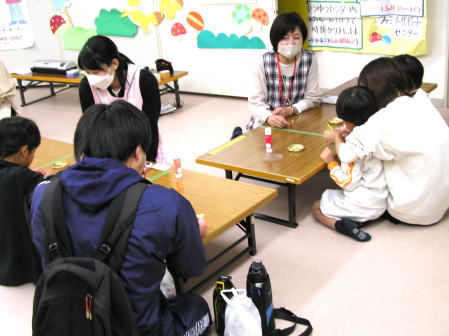 | 令和5年 2月 8日 | 摂南大学松塚健康プロジェクト&松塚地区連絡協議会のコラボイベントとして、10:00~ 11:00までの間、「摂南大学看護学部1回生の6名とシニア松塚会員との交流会」が松塚ふれあい館で開催されました。 学生さんとは孫世代との交流となり、自己紹介・趣味・好物などなどのおしゃべり、団扇で洗濯バサミを掬うゲームなどをして交流を深めました。学生さんには、なんでもやる気にみなぎった高齢者に少し戸惑わせたようでもありましたが、これからも連協関連行事で何かとお世話になるはずです。これからも よろしく願います。 |