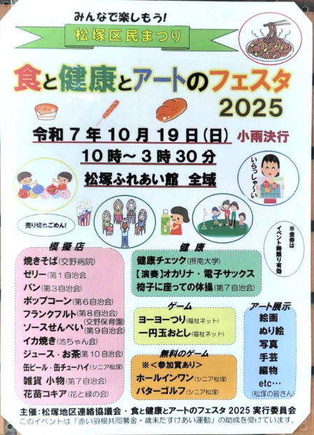 | 令和4年11月20日 | 昨年は、12月に松塚連協による「松塚アートフェア2021」が開催されましたが、本年は、松塚連協による「松塚健康フェスタ2022」が松塚ふれあい館において、摂南大の先生・学生さんのお力もお借りして京大の先生、摂南大学生さんによる講演、健康チェックと松塚を4ブロックに分けてのグラウンド・ゴルフのホールインワン、公式輪投げ、カラオケによる対抗戦、スマホクラブの写真展、福祉ネットの皆さんによる喫茶でフェスタが開催されました。 | ||||||||||||||||||||||||||||||||||||||||||||||||||||||||||||||||||||||||||||||||||||||||||||||||||||||||||||||||