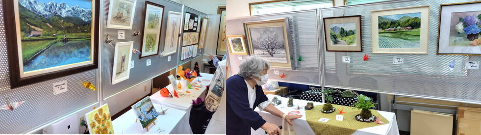 松塚連協による「松塚アートフェア2021」が12月18日は10:00~16:00、19日は10:00~15:00松塚ふれあい館において開催されました。 松塚の芸術家による書、絵画、写真、陶芸、手芸、盆栽等が展示され、チャイナペイント体験、折り紙体験、喫茶の各コーナーもあって、コロナ禍で会えなかった人達とも久し振りに顔を会わせ、マスク越しに挨拶を交わしながらの鑑賞でした。 「松塚アートフェア2021」プログラムと出展者一覧表はこの項をクリックすると繋がります |